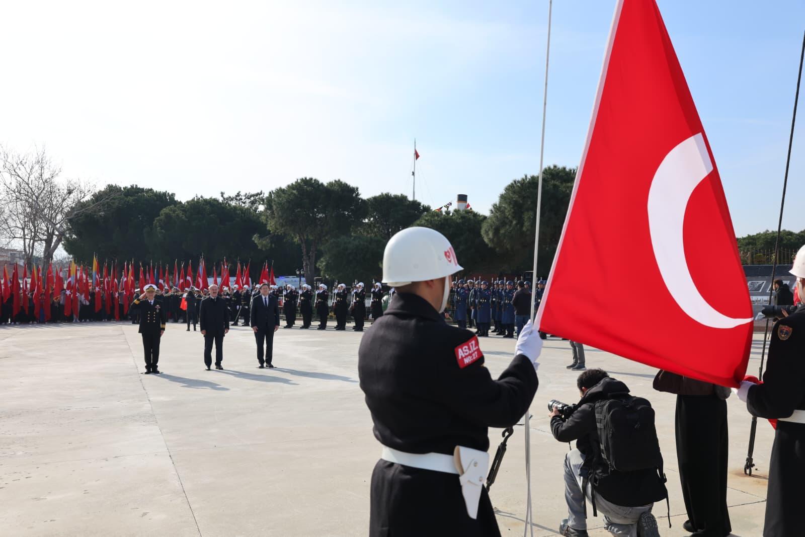 Saygı duruşu ve İstiklâl Marşı ile başlayan 18 Mart Şehitleri Anma Günü ve Çanakkale Deniz Zaferi’nin 111’inci yıl dönümü töreninde konuşmalar yapıldı.