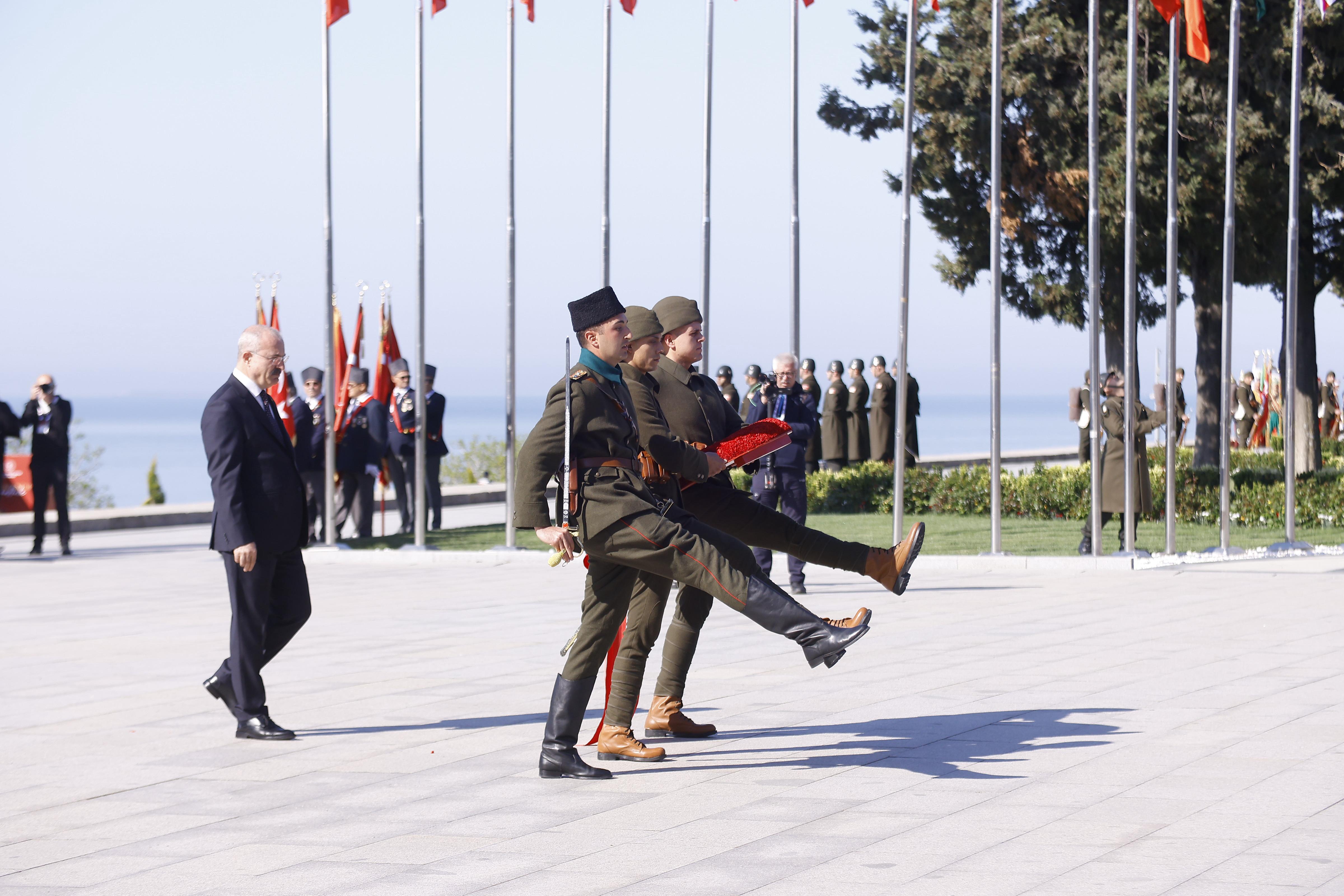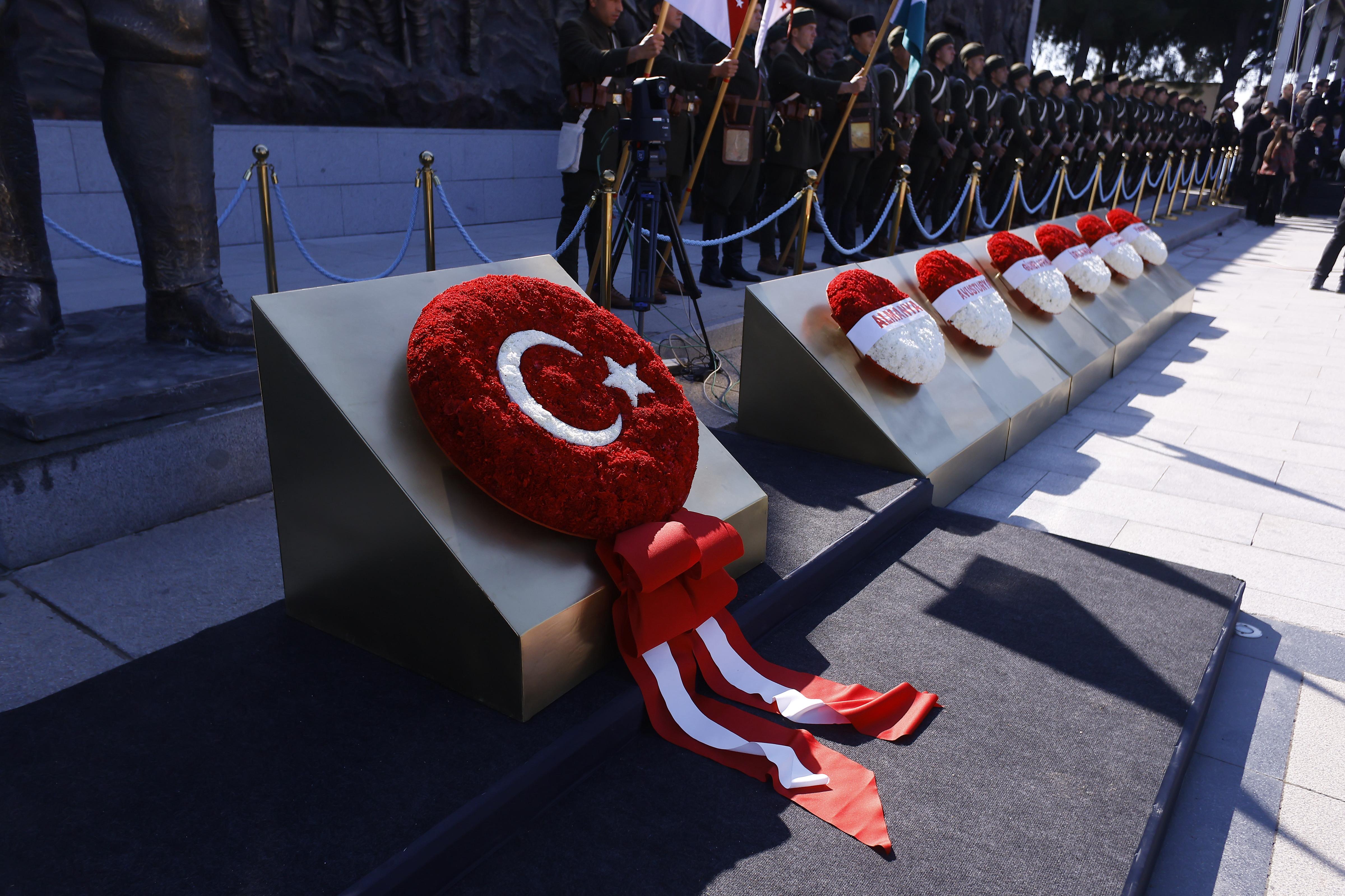 Şehitler Abidesi'ndeki tören, Çanakkale Valisi Ömer Toraman'ın Atatürk Anıtı'na çelenk bırakmasıyla başladı.