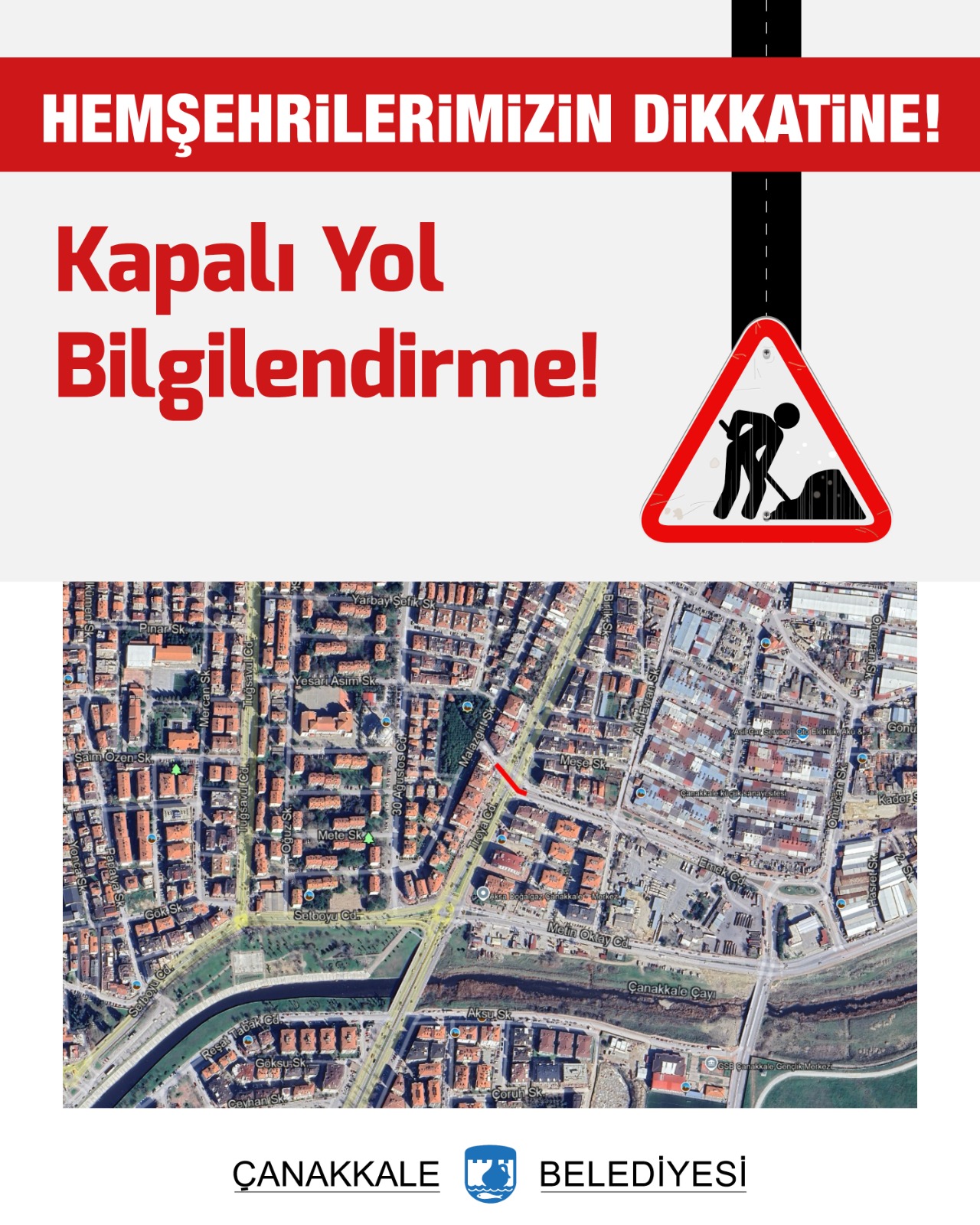 Çalışma süresince hemşehrilerimizin trafik işaret ve işaretçilerine dikkat etmelerini önemle rica eder, bilgilerinize sunarız.”