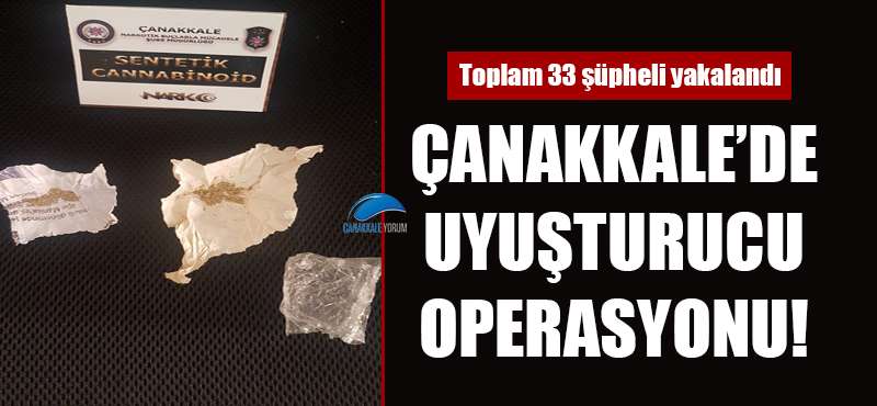 Çanakkale ve ilçelerinde uyuşturucu madde satışı yapan ve kullanan kişilere yönelik operasyonlarda 33 şüpheli yakalandı.