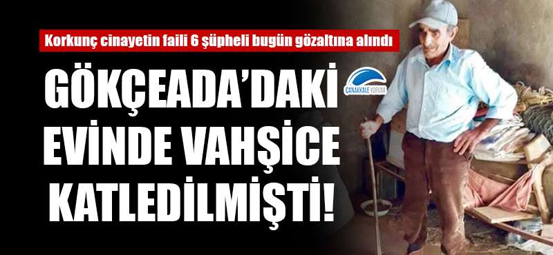 Zafir Pinar isimli 86 yaşındaki Rum asıllı vatandaşın Gökçeada'daki evinde geçtiğimiz 13 Mayıs tarihinde elleri ve ayakları bağlanarak vahşice öldürülmesi olayının faili oldukları değerlendirilen 6 şüpheli bugün gözaltına alındı.