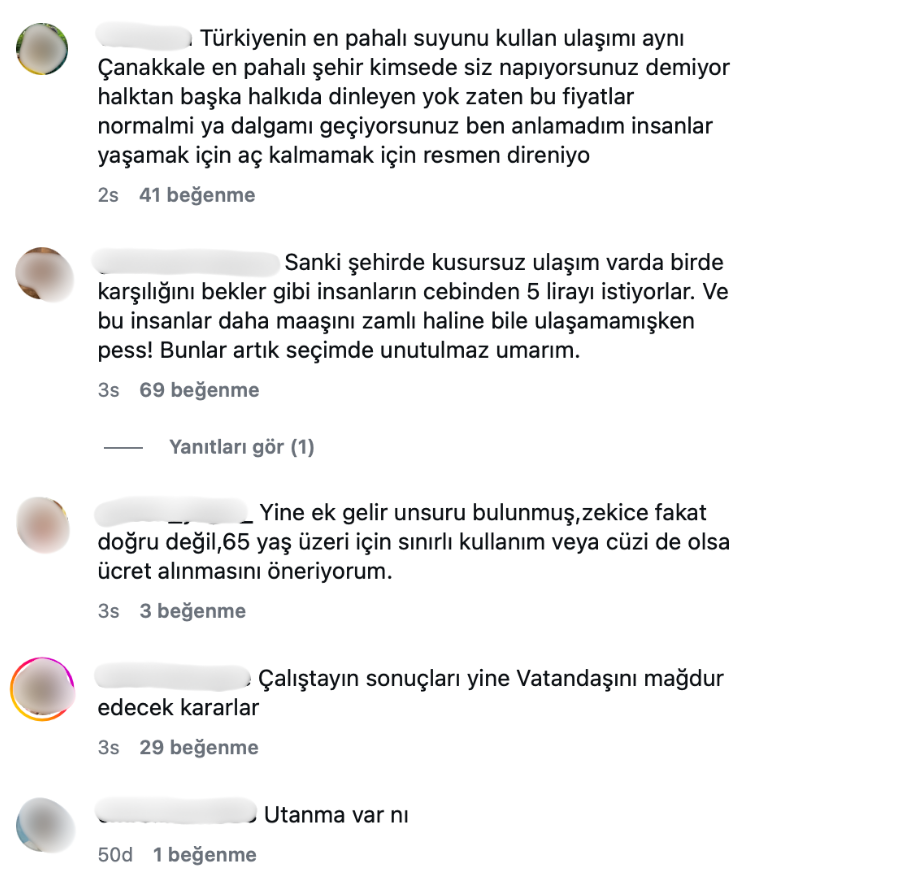Belediyenin bu uygulaması tartışmaları beraberinde getirirken, Çanakkale’deki toplu ulaşımın kalitesizliğini ve kart ödeme noktalarının yetersizliğini gerekçe gösteren vatandaşlar, tüm bu sorunlara rağmen bir de kredi kartlarından komisyon ücreti kesilmesine sosyal medyada çok büyük tepki gösterdi.